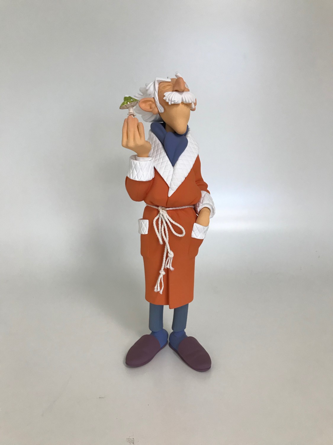 Dans l'album "Z comme Zorglub" l'essentiel de l'intrigue tourne autour du comte de Champignac et c'est certainement là que ce personnage prend toute sa dimension: il est tour à tour le héros et celui que tous prennent en grippe. On le retrouve plein de fureur dans certaines scènes puis complètement abattu un peu plus loin... Mais c'est au moment ou il pète un cable, excédé par le spectacle désolant de son laboratoire mis à sac par les Champignaciens et abasourdi par la bêtise du maire qui souhaite "interdire les champignons sur le territoire de la commune", que le comte s'impose comme un personnage tout bonnement cornélien! Je n'ai pas voulu reproduire fidélement une case particulière, mais j'ai préféré restituer dans l'attitude de cette statuette l'expression malicieuse ( et peut être un peu vicelarde, j'en conviens...) qu'un vieux savant fou se doit d'avoir lorsque on lui chauffe un peu trop les oreilles. Attention, il n'a peut être pas la bombe atomique, mais il a au moins le champignon... ça va fumer!